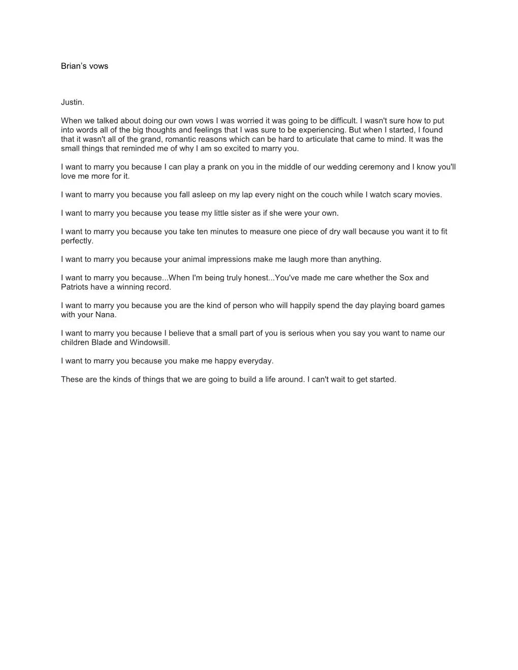 Speeches & Vows